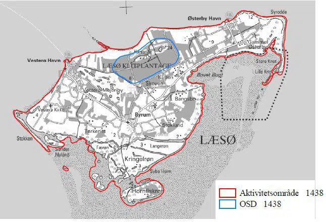 Læsø Kommune består af et samlet areal på ca. 118 km2. Aktivitetsområde 1438 Læsø består af omtrent 129 km2, da en del af de lavvandede områder syd for øen er med i afgrænsningen af Aktivitetsområdet. OSD 1438 udgør 10 km2 og er beliggende på den nordlige del af øen i Læsø Klitplantage.