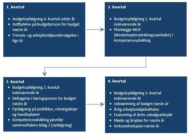 - Årligt fælles arbejdsmiljøudvalgsmøde, hvor alle arbejdsmiljøgrupper og MED-udvalg samles til fælles information om relevante arbejdsmiljøforhold og indsatser for Læsø Kommune.
