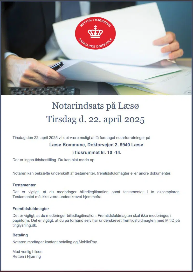 Notaren kommer til Læsø Rådhus den 22. april 2025