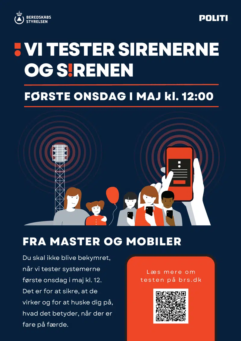 Rigspolitiet og Beredskabsstyrelsen gennemfører hvert år en landsdækkende test af varslingssystemerne den første onsdag i maj.