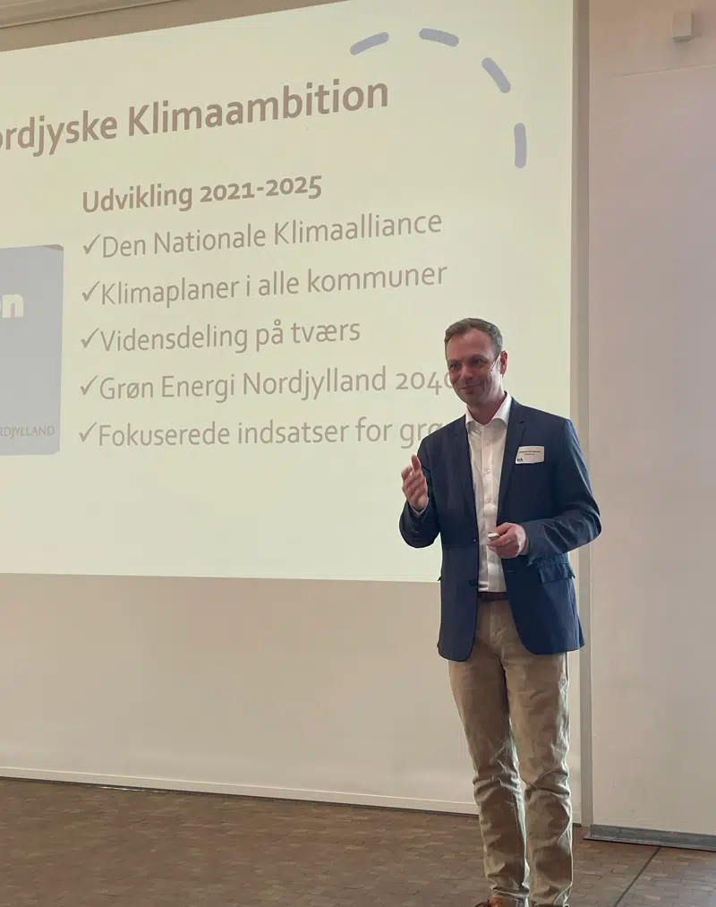 ”I Nordjylland er vi unikke ved at have en fælles klimaambition, for hele regionen. Og det ser ud til at indsatsen virker. Seneste oversigt fra 2022 viser, at vedvarende energi dækker 44% af vores energiforbrug. Vores mål er at være 100% selvforsynende med vedvarende energi i 2040, som vi sammen har sat som mål i Den Fælles Nordjyske Klimaambition,” fortæller Tore Bach Nielsen, Klimakoordinator KlimaNord.