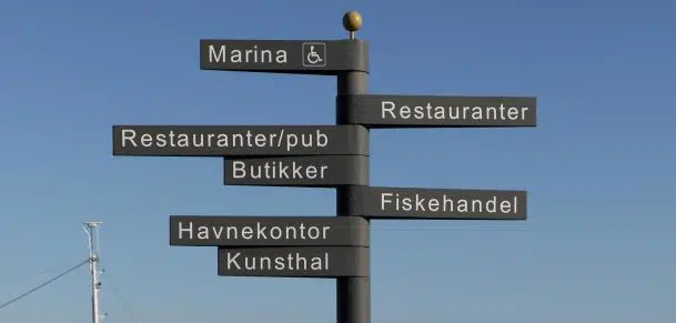 Skiltning og reklamering skal udformes således at der opnås en god helhedsvirkning og et højt informationsniveau.